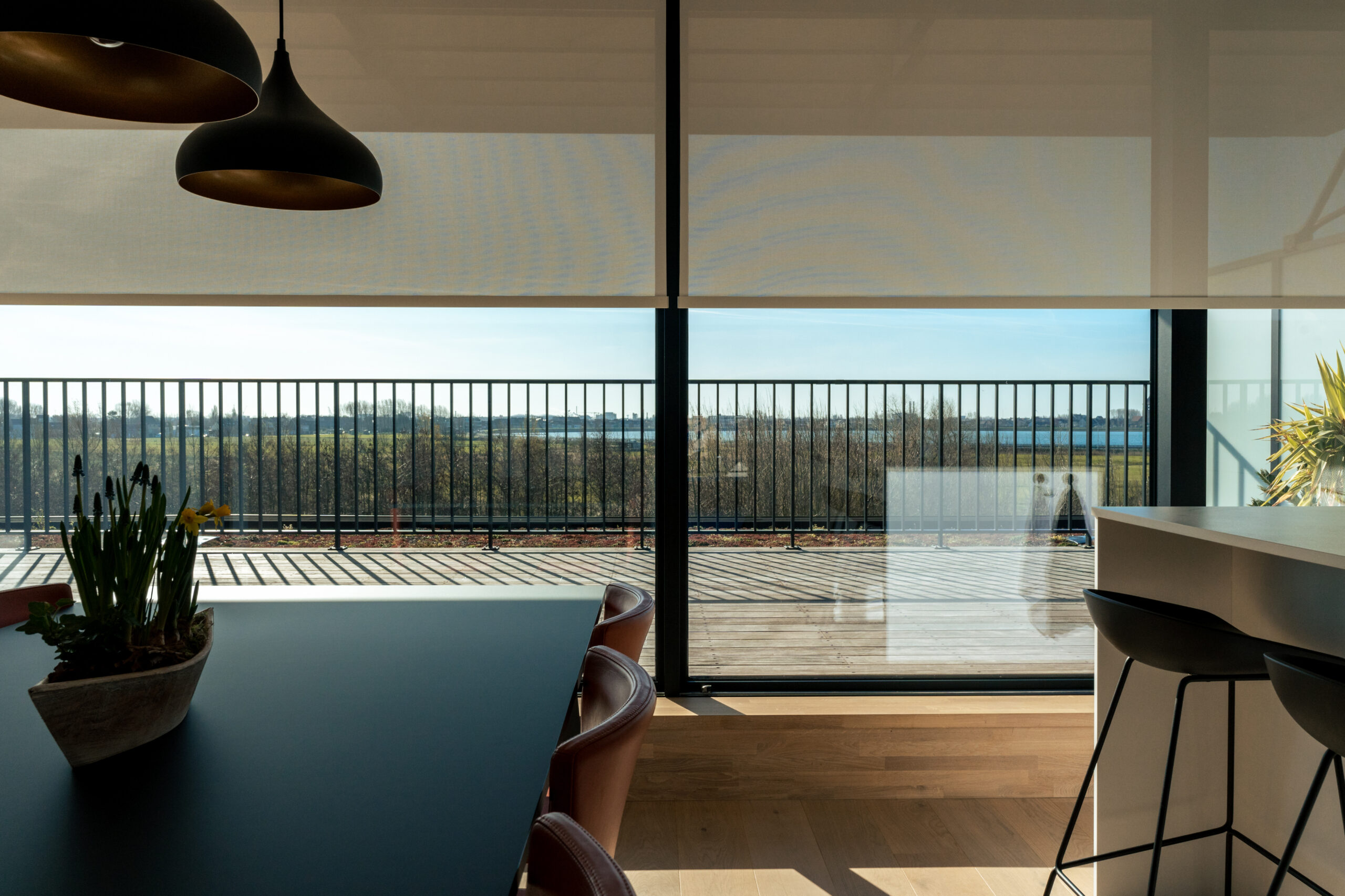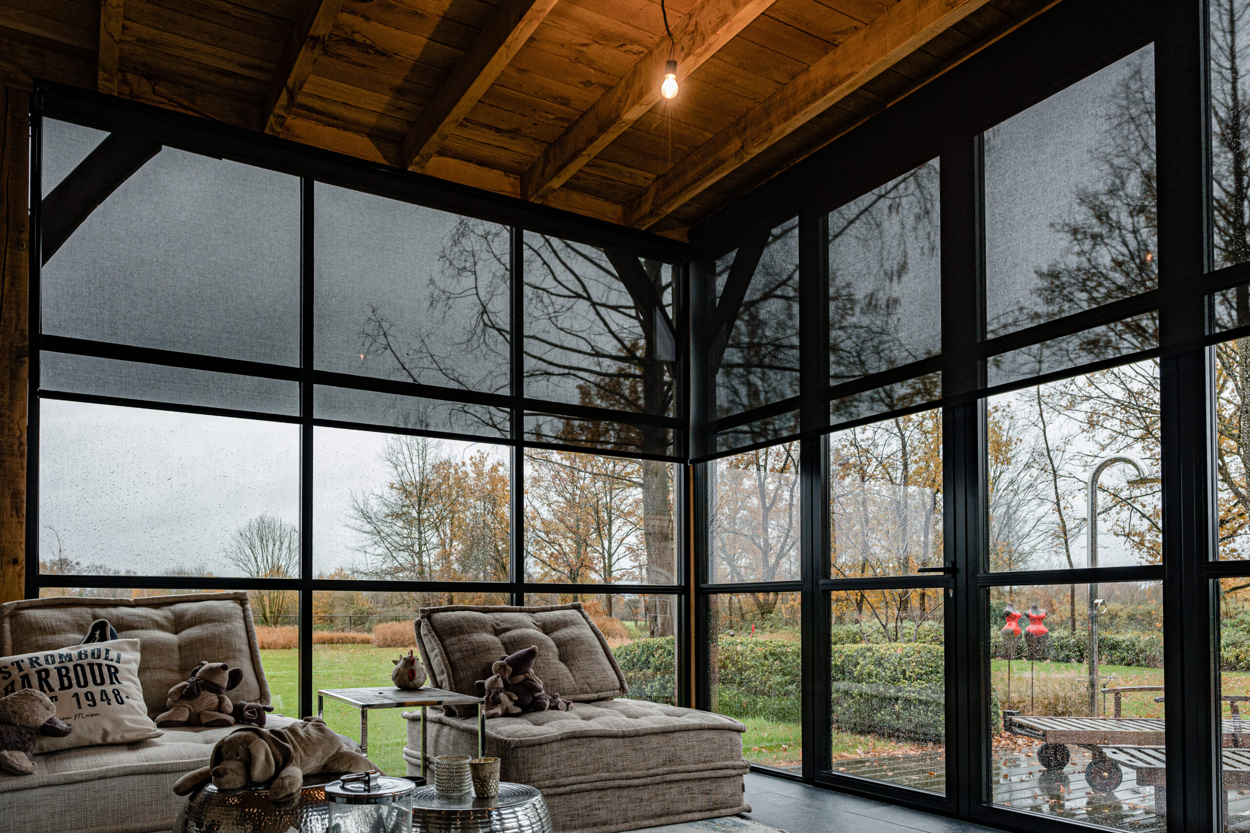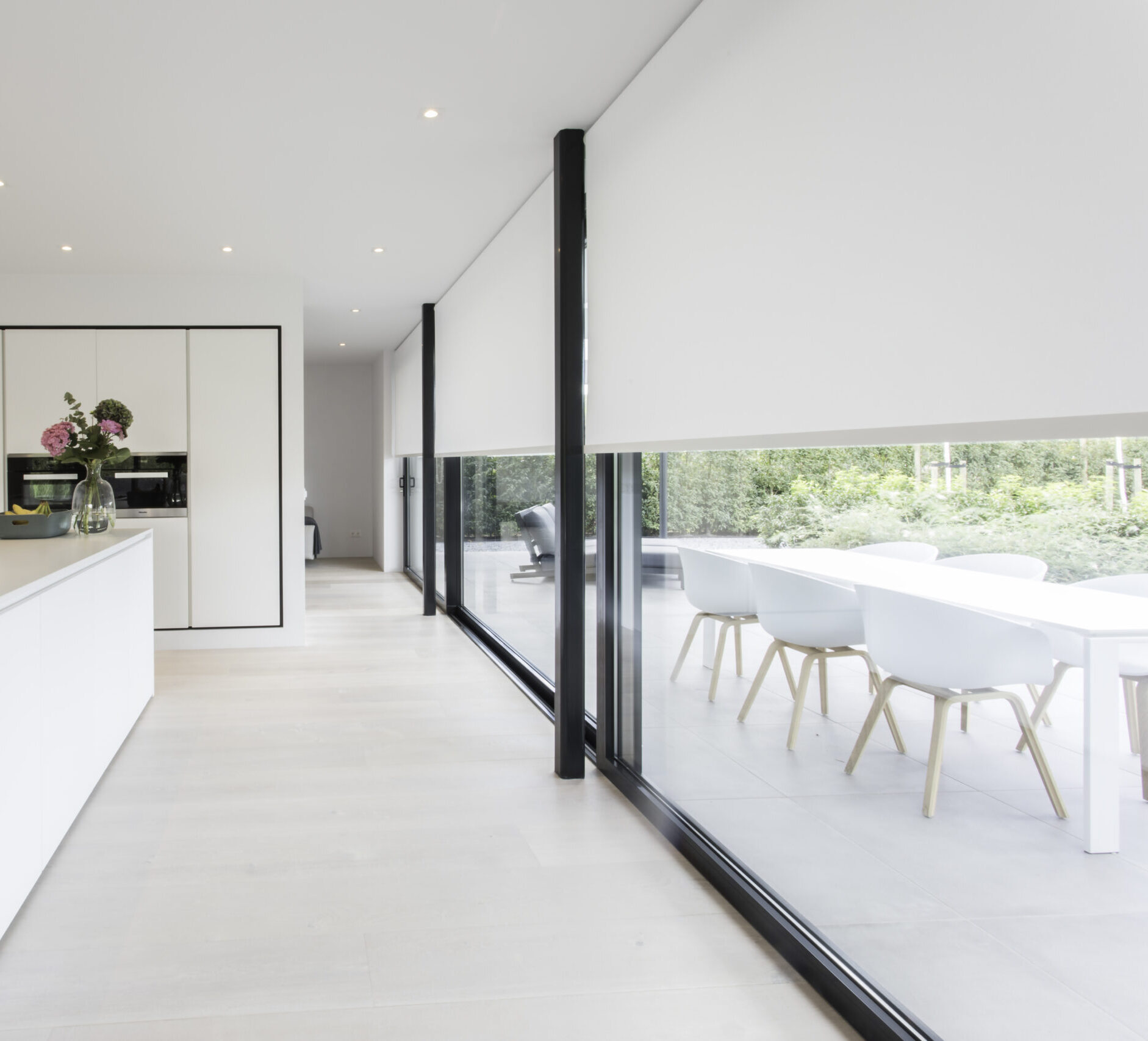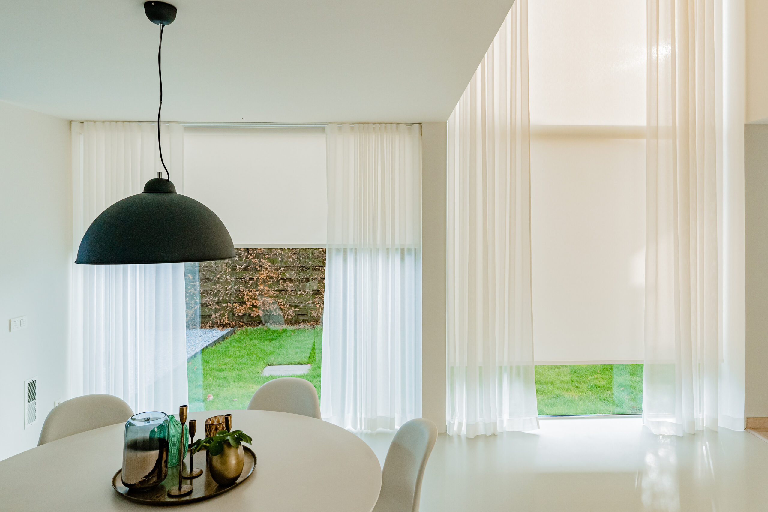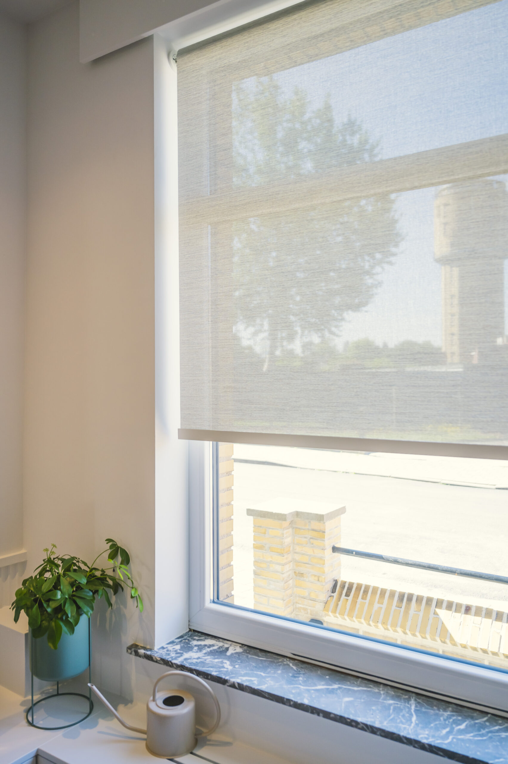Creëer precies het gewenste licht­effect met onze rolgordijnen: van transparant filterend tot volledig verduisterend. Ze passen perfect op grote keukenramen én kleine vensters en nemen weinig ruimte in, terwijl ze uw interieur een moderne, elegante touch geven. Beschikbaar met elektrische Somfy‑bediening (domotica, schakelaar of afstandsbediening) én met oplaadbare batterijmotor; geen bekabeling, enkel gebruiksgemak.